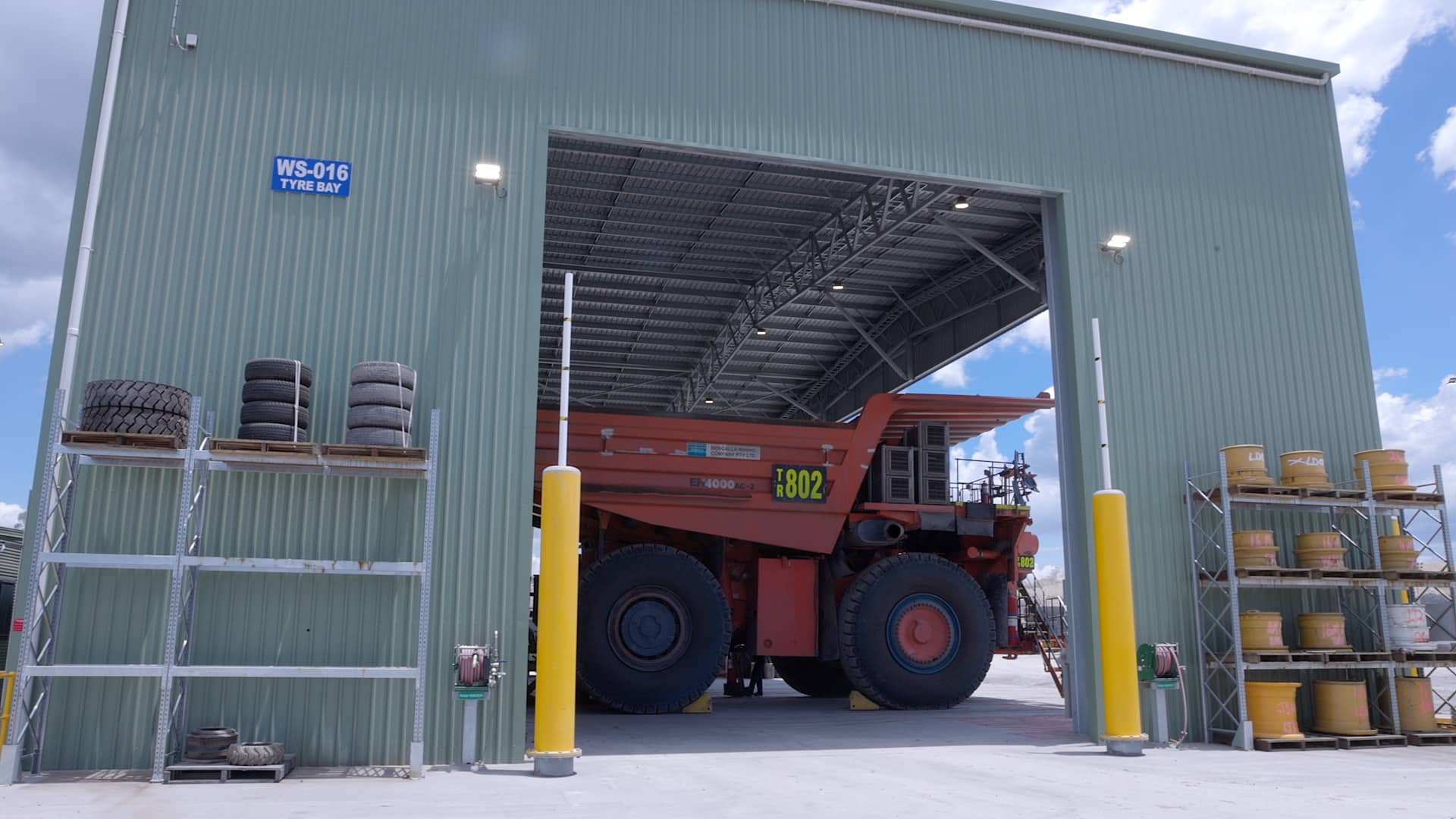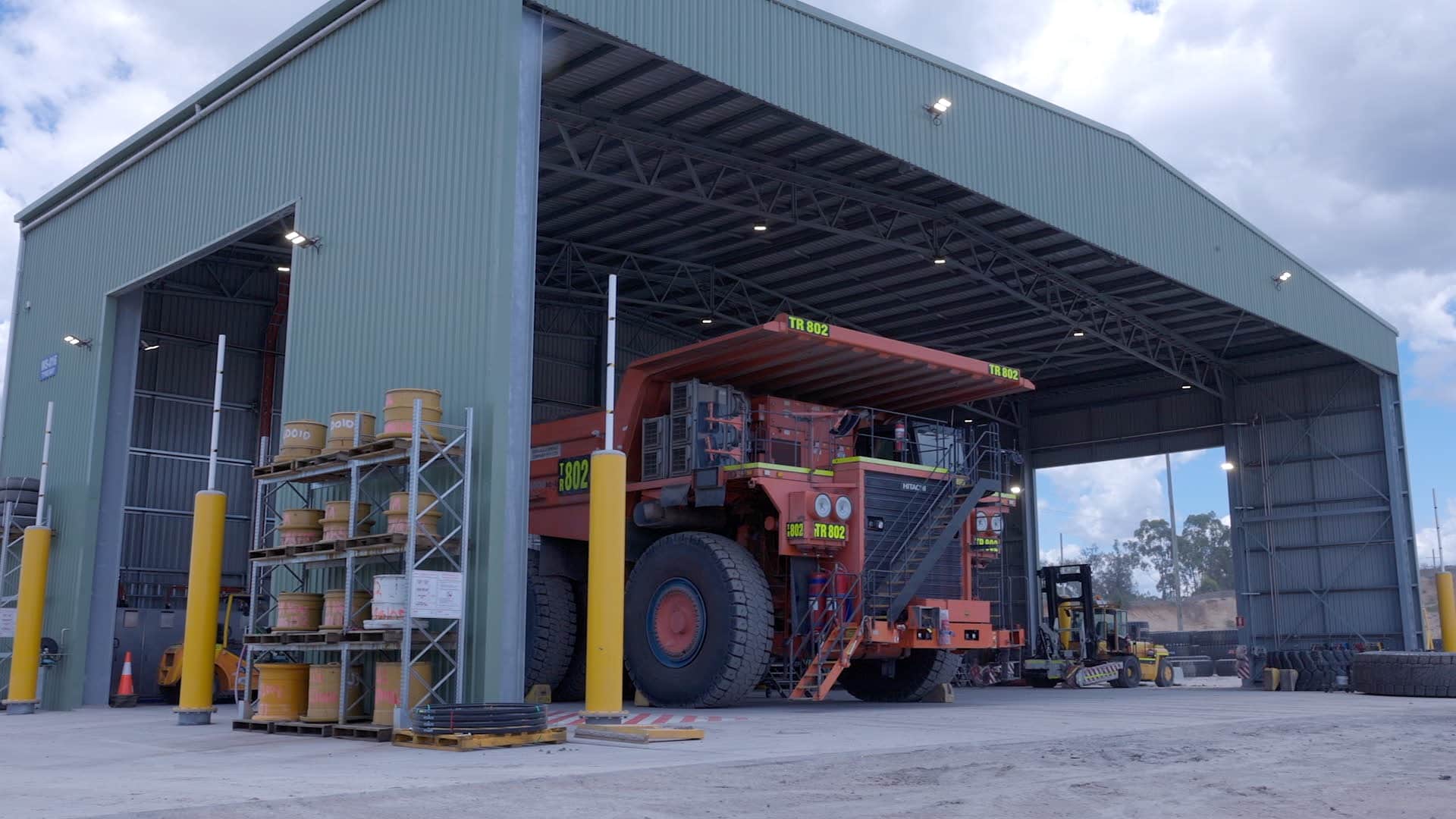 The largest of the 3 project included a tyre changing shed measuring; 36m wide x 20m long x 12m high, designed to suit the exact needs of a critical process in this minion operation.