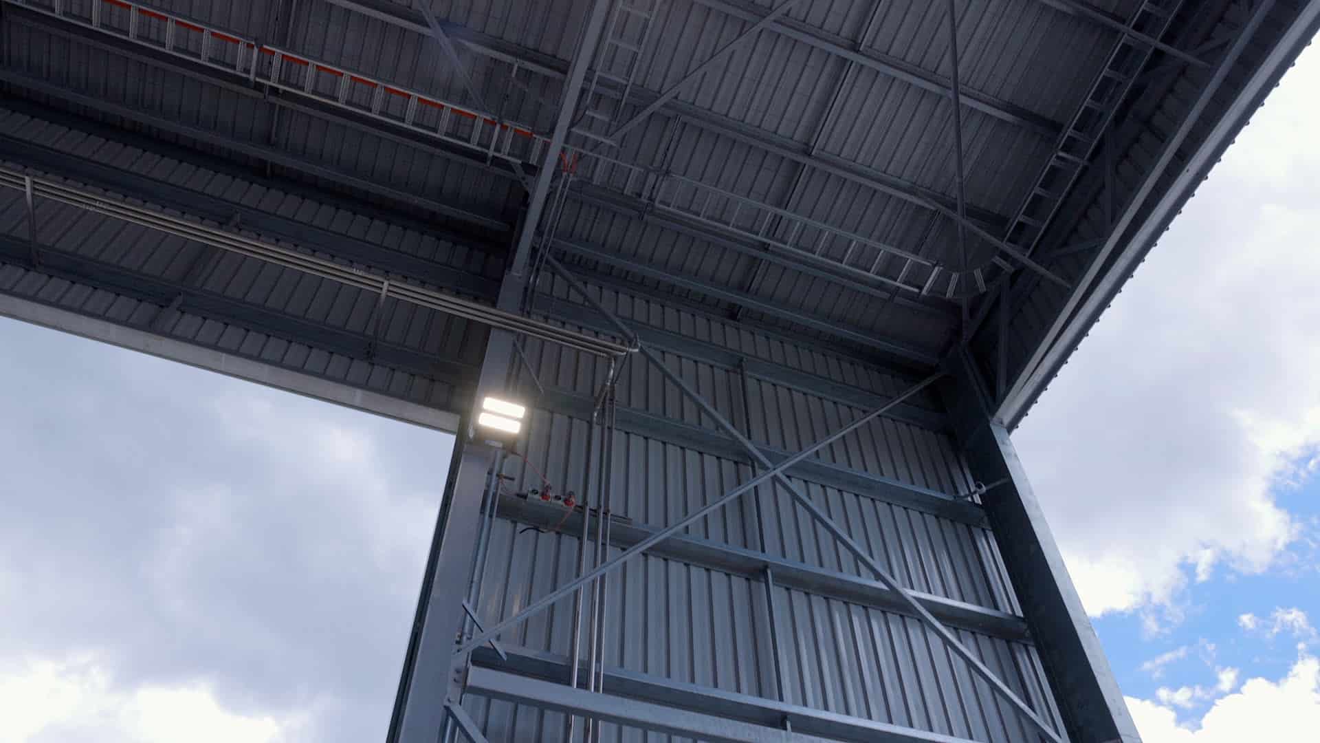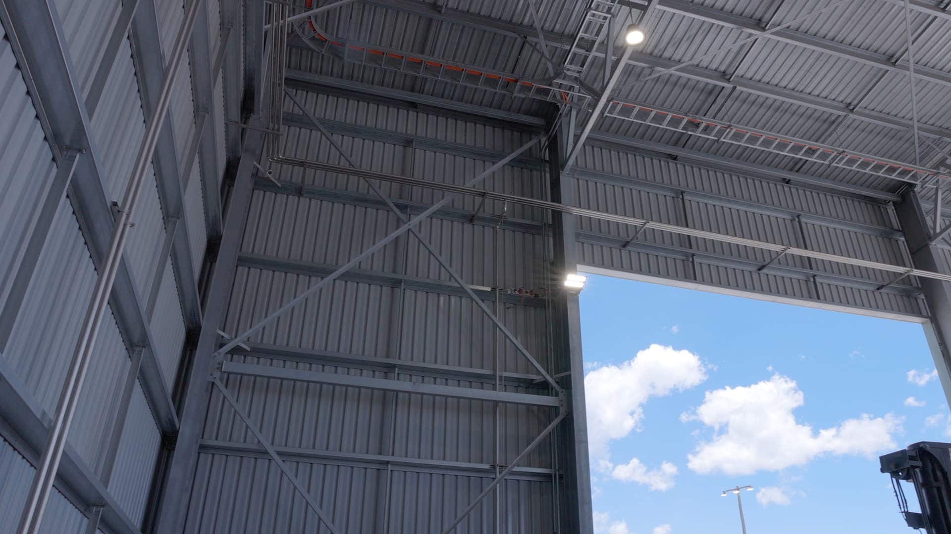 Large 10m x 10m openings were included at each end to allow for dual sided access to manoeuvre tyre and wheel loading machinery in and out of the shed.