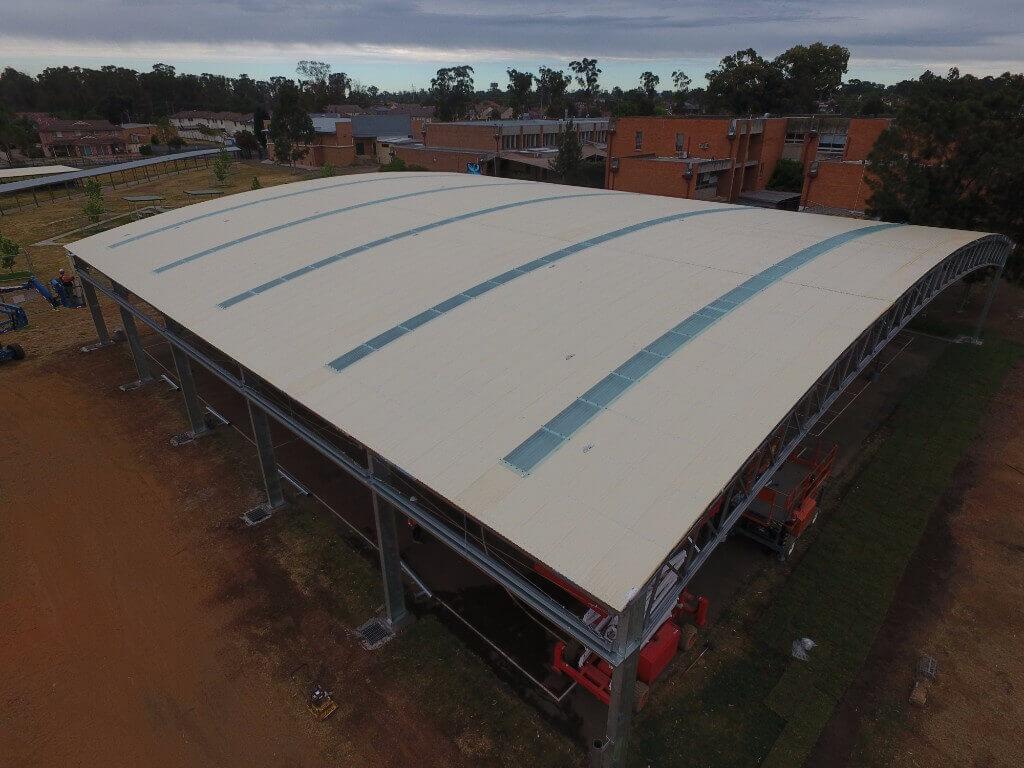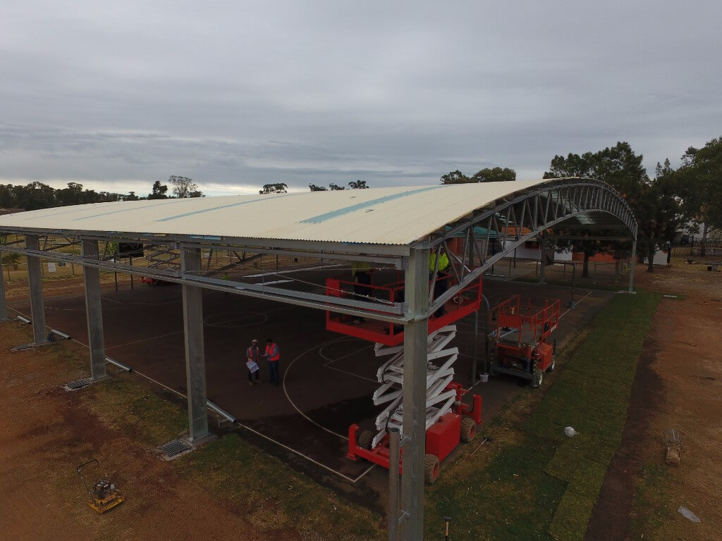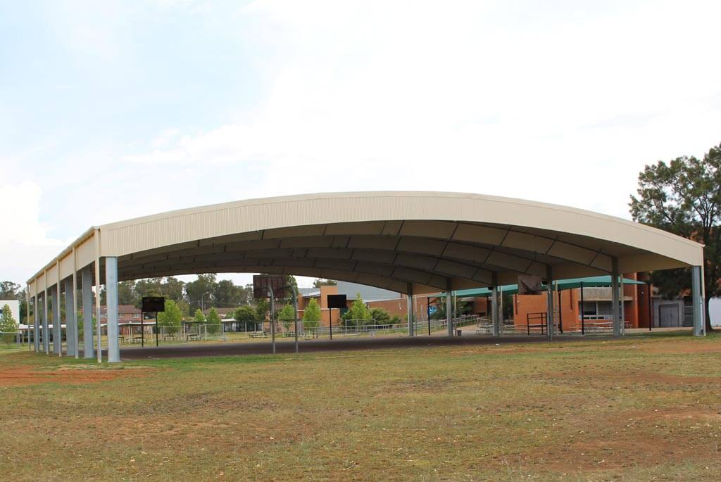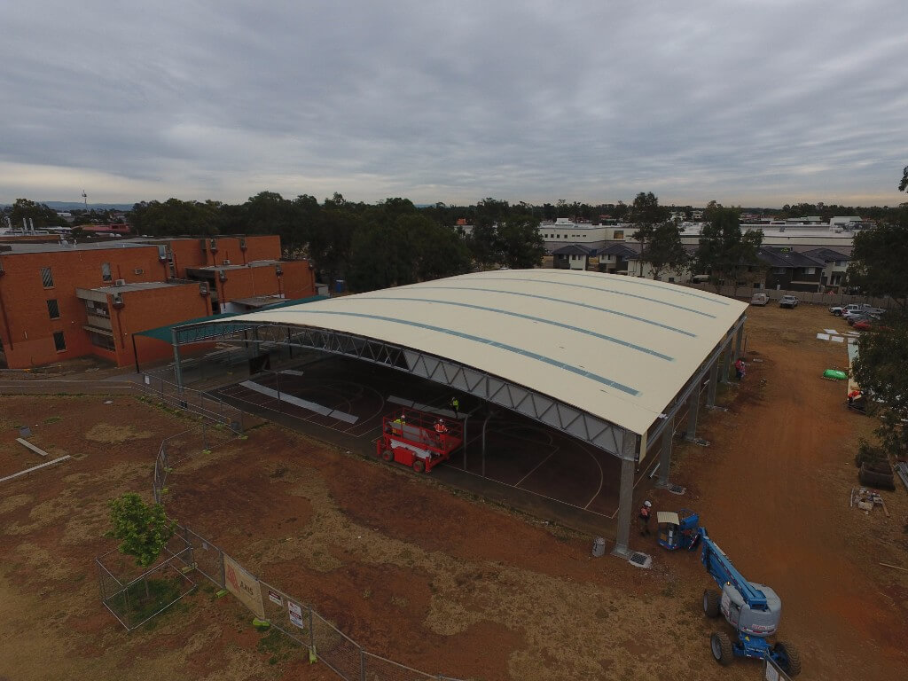 Our Customer, a school in Plumpton, NSW, needed a large cover for a double basketball court. Working closely with our client we consulted them to ensure the final structure would suit all there needs. The result is a high-quality COLA, that stays within the Department of Education’s building standards and looks great.