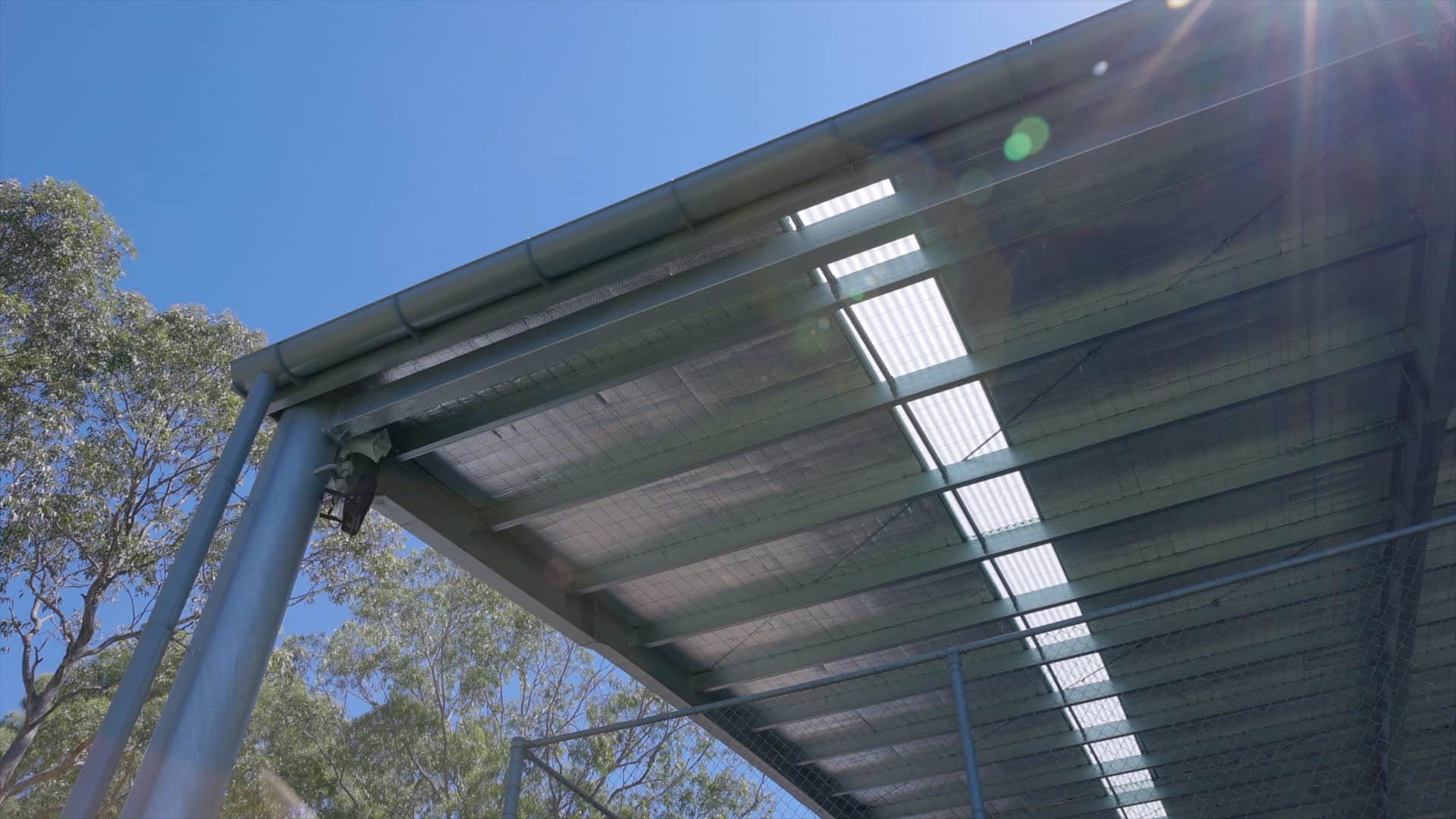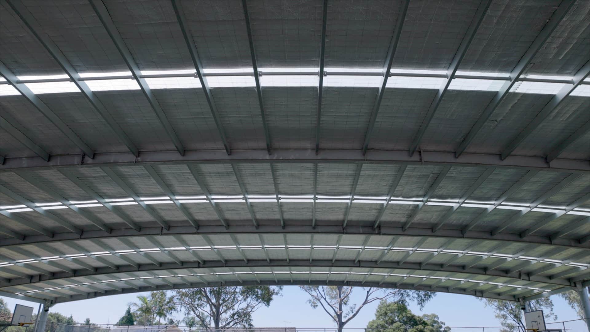 The team at Techspan designed, engineered and manufactured a curved roof cover including a basketball and volleyball friendly height allowance.
