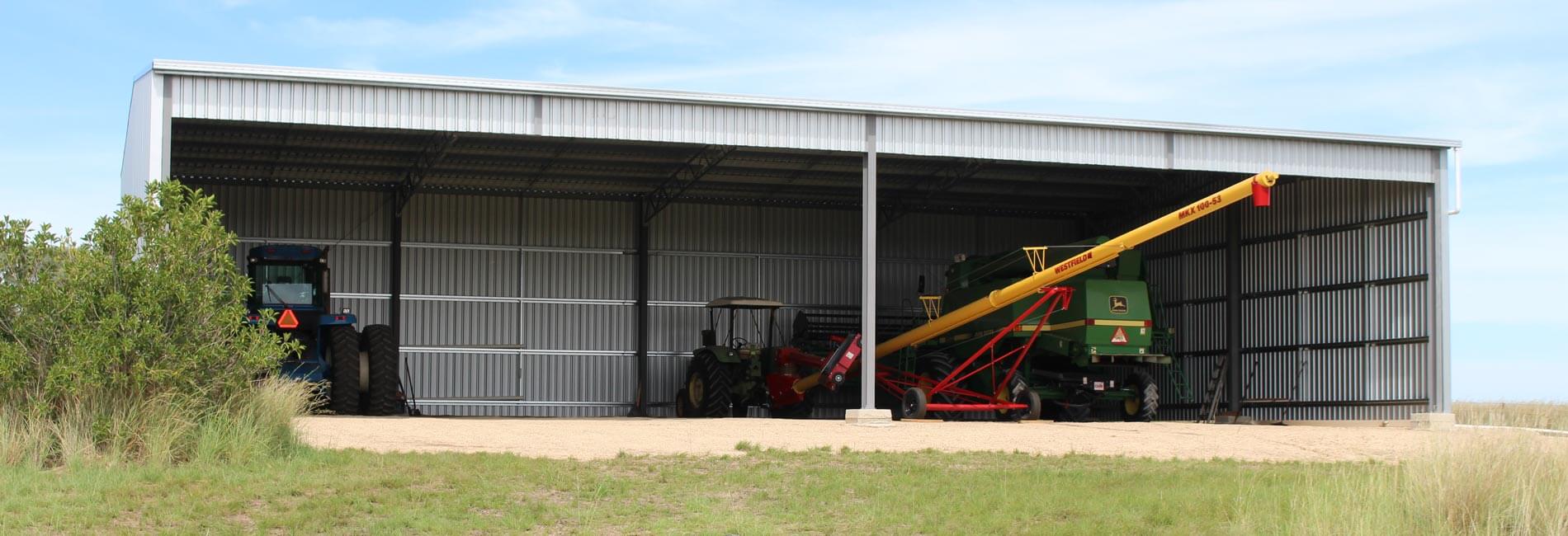 The customer contacted TechSpan in need of a structural steel shed to store four pieces of large farm machinery.