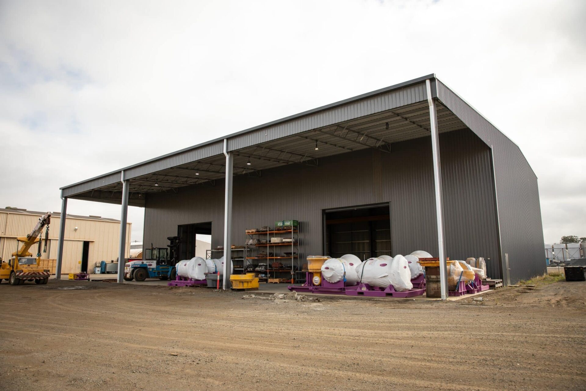 Due to the growth of their business, they needed a new, purpose built heavy manufacturing facility that provided the height needed for their various projects, support for a 20 tonne gantry crane and significant sized openings (both height and width) to enable maximum accessibility for component/product ingress, egress and loading.