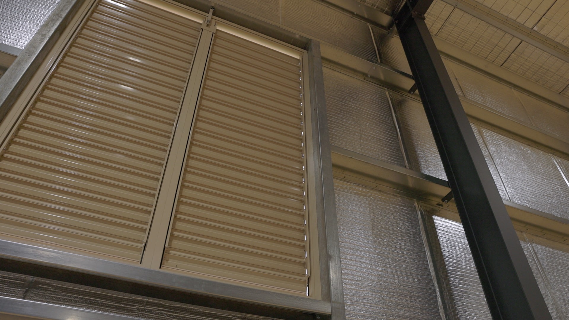 Automated louvers were installed to each side (long elevations) to maximise airflow/ventilation.