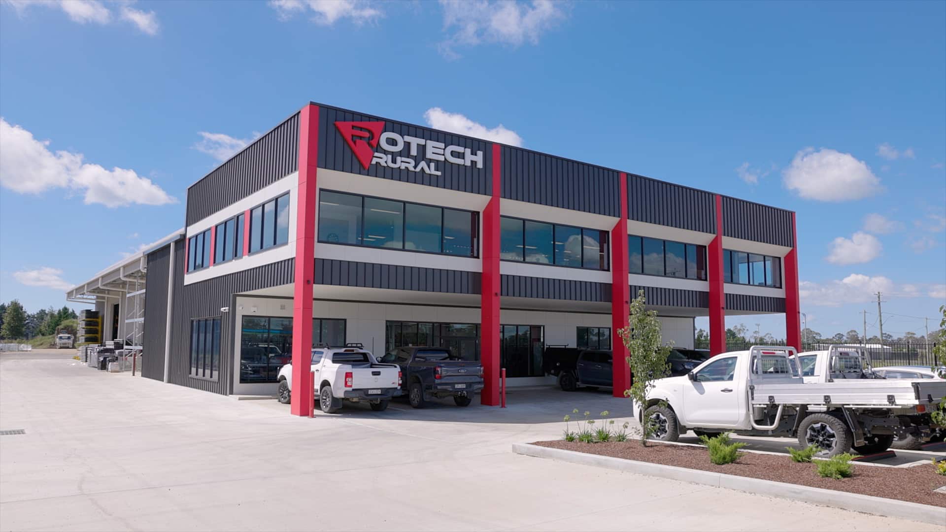 At first glance, you notice the modern design style facade with integrated undercover parking and a colour palette that compliments Rotech Rural’s brand.