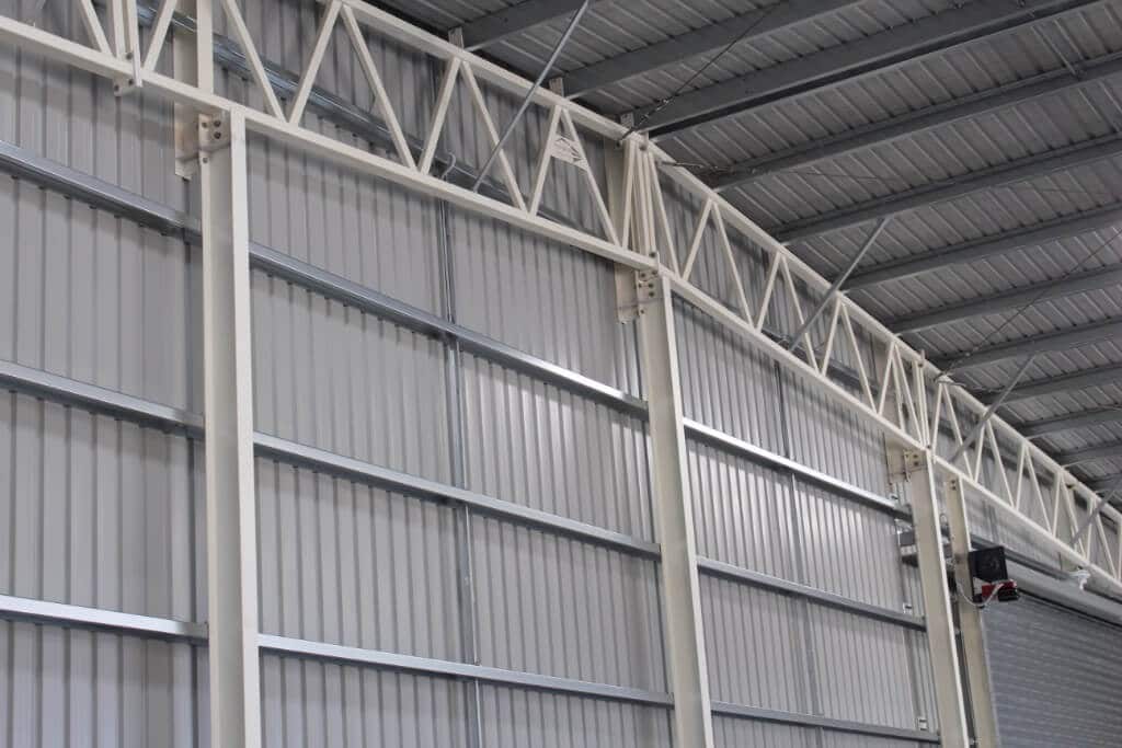 The hangar needed to include a full width opening for large hangar doors at one end to allow numerous aircraft to operate from the hangar.